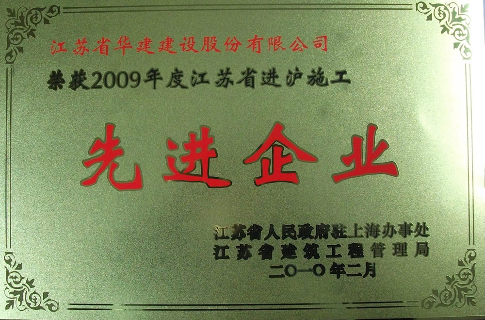 公司七獲“江蘇省進滬施工先進企業”稱號 時間:2010-03-29 6329 3月10日,在江蘇省政府駐滬辦、江蘇省建管局召開的2009年度江蘇進滬施工總結表彰暨迎世博動員大會上,江蘇華建被表彰為“江蘇省進滬施工先進企業”,這已是第七次獲次殊榮;表彰會上, 上海洛克外灘源總承包項目部、中船臨港二期加工綜合樓項目部被評為優秀項目部,另有3人被評為優秀項目經理,各有1人被評為安全管理先進個人、質量管理先進個人、經營管理先進個人、財務管理先進個人,有2人被評為綠色施工管理先進個人。