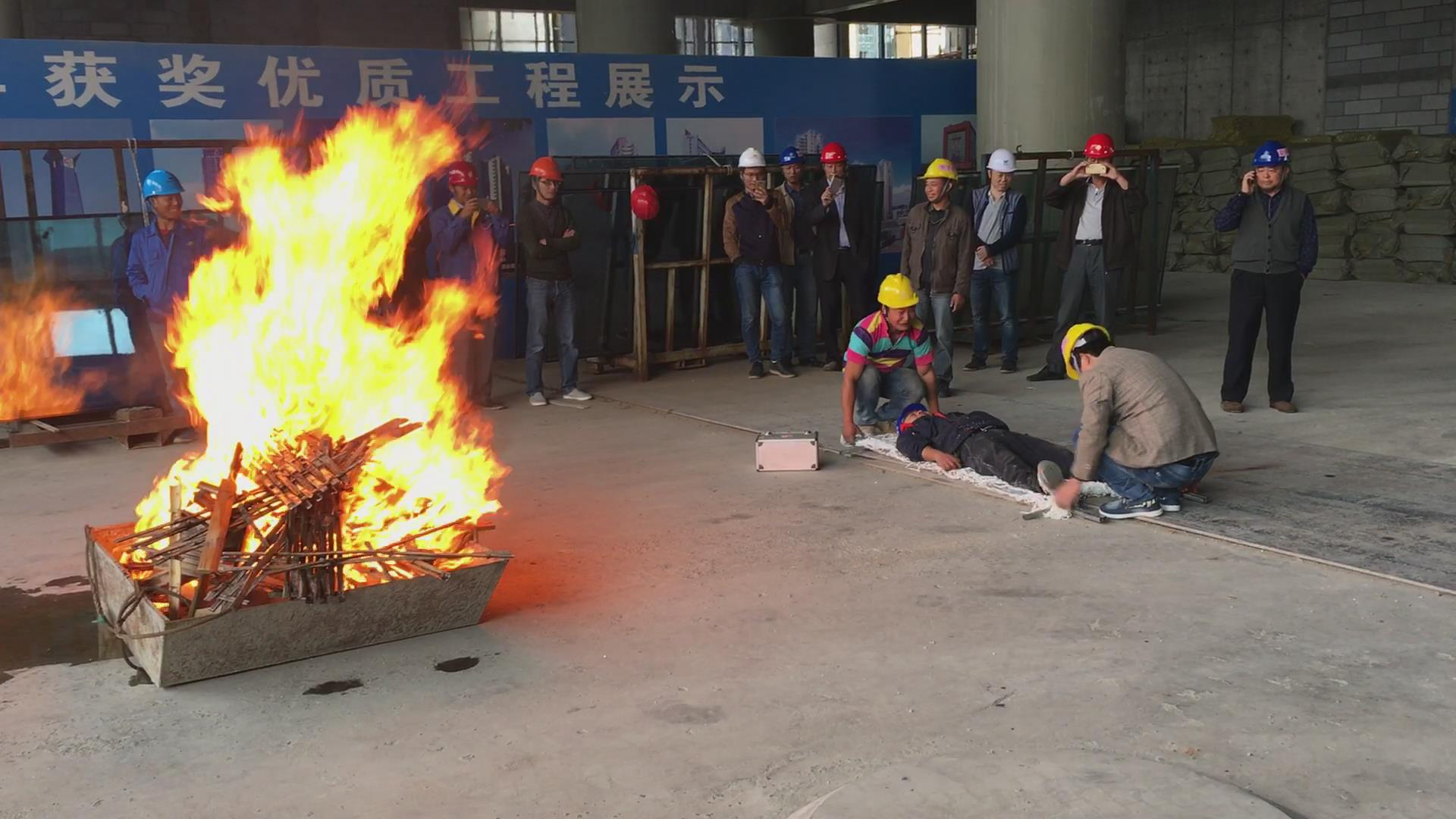 本次演練分為四個部分:第一部分,熟悉演練計劃和應急知識培訓;第二部分,對傷員緊急救治并撤離現場;第三部分,現場滅火;第四部分,演練總結。實戰(zhàn)演練,進一步檢驗現場施工及指揮人員應對突發(fā)事件的快速反應能力、指揮協調能力和應急處置能力,達到報告及時準確,預案啟動迅速,指揮高效有序;部門協調配合,機制運行暢通;處置科學準確,事故控制有效的目的,最大限度減少現場安全事故突發(fā)事件造成的危害,有效保障施工人員的身體健康和生命安全。