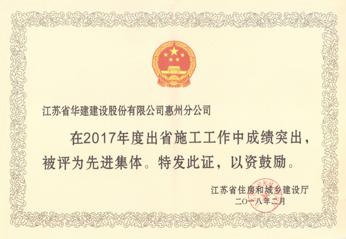 惠州公司獲評“2017年度江蘇出省施工先進(jìn)集體”
