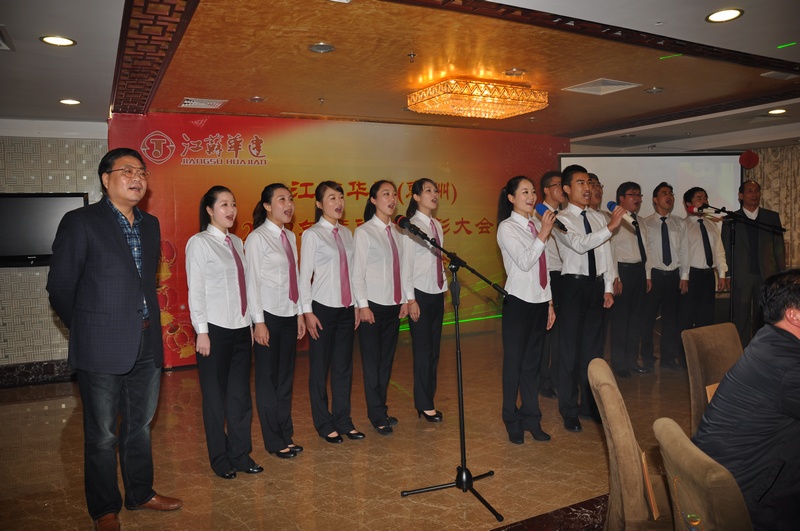 在隨后的迎春聯誼會上,一臺由惠州公司上下精心準備、齊力打造、自編自演的精彩演出,表達出了廣大員工對2012年取得業績的自豪與喜悅,以及對公司美好未來的憧憬與向往。在演出中,由機具處員工莊曙演繹的男聲獨唱,以高亮的美聲唱法,讓在座嘉賓擊掌叫好;四位機關員工表演的三句半《華建style》,詼諧幽默談發展,回顧展望頌華建,讓在場觀眾掌聲不斷;蔡總和華總兩位領導帶頭獻歌,唱出了華建人對事業的激情與豪邁,對未來的堅定與信仰。最后,由宗總、林總兩位總部領導和惠州公司12名男女員工組成的合唱團獻上的一曲《華建之歌》更是將整個活動推向了高潮,臺上的小合唱變成了在場華建人的大合唱,掌聲歡呼聲此起彼伏,年會在歡歌笑語中圓滿結束。新年思變,實干興業,華建人立足惠州,一路高歌,奮勇前行。