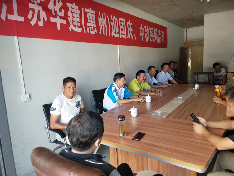 喜迎國慶、中秋,促進交流、互動 時間:2017-10-06 2665 10月3日,惠州公司機關全體在惠人員在總經理周群利的帶領下,前往公司直管項目部對節日堅守崗位的人員進行了慰問,并與他們進行了拓展、益智等互動活動。活動期間,周總與項目部人員進行了座談,并代表公司對節日堅守崗位的人員表示親切的慰問,詳細了解他們節日的工作、生活安排情況。同時要求項目部負責人要合理安排好大家的工作和生活,讓他們過一個喜慶、祥和的節日。會后,公司機關全體人員與項目部在崗人員開展了羽毛球、拔河、摜蛋、象棋等拓展、益智活動。通過這次活動,加強了交流,增加了了解,提升了凝聚力。