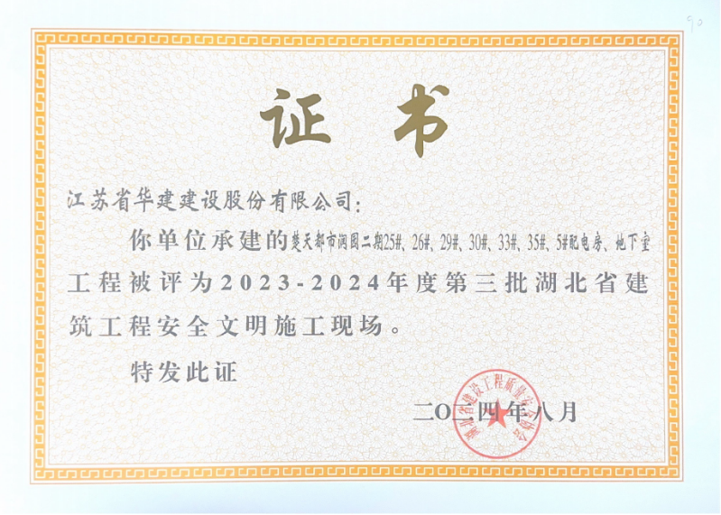近日,公司承建的楚天都市潤(rùn)園二期項(xiàng)目被湖北省建設(shè)工程質(zhì)量安全協(xié)會(huì)評(píng)為“2023-2024年度第三批湖北省建筑工程安全文明施工現(xiàn)場(chǎng)”和“2024-2025年度第一批湖北省建筑結(jié)構(gòu)優(yōu)質(zhì)工程”。