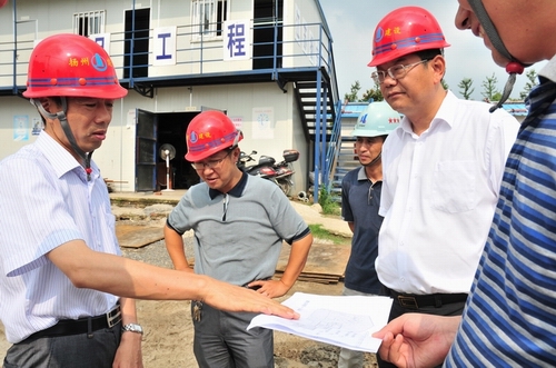 陳揚副市長視察建設大廈工地 時間:2011-08-12 5138 8月12日下午,揚州市政府副市長陳揚、市建設局局長楊正福一行前往江蘇華建代建的揚州建設大廈暨規劃展覽館、市民中心項目工地現場視察。揚州建工控股公司、江蘇華建董事長陸金龍陪同視察,并將工程施工進展情況向陳副市長作了簡要匯報。陳副市長對建設大廈總體施工進展表示滿意,并提出希望所有參建單位精心組織,科學管理,確保這一政府重點工程建設順利推進。公司領導程杰等一起陪同視察。