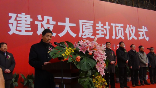 揚(yáng)州建工控股有限責(zé)任公司董事長、黨委書記陸金龍董事長在封頂儀式上致辭。他說,建設(shè)大廈是體現(xiàn)市委、市政府民生城建理念的標(biāo)志性項(xiàng)目之一,其中的城市規(guī)劃展覽館是提升城市品質(zhì)、展示城市未來宏偉藍(lán)圖、宣傳城市美好形象的重要陣地,市民中心是市民活動、交流、服務(wù)和區(qū)域文化展示的固定場所,這個(gè)項(xiàng)目的建設(shè)對進(jìn)一步提升城市基礎(chǔ)設(shè)施建設(shè)水平,完善城市功能,提升城市品質(zhì),建設(shè)“三個(gè)揚(yáng)州”都具有深遠(yuǎn)和重要的意義。項(xiàng)目自2010年5月2日開工以來,作為項(xiàng)目投資建設(shè)主體,建工控股公司認(rèn)真貫徹落實(shí)市委、市政府的指示精神,及時(shí)選派精干力量,切實(shí)優(yōu)化建設(shè)方案,合理調(diào)配資源,主動協(xié)調(diào)關(guān)系,確保項(xiàng)目建設(shè)高效、有序、廉潔推進(jìn)。承擔(dān)建設(shè)代理任務(wù)的江蘇華建和承擔(dān)施工任務(wù)的揚(yáng)建集團(tuán)、揚(yáng)安集團(tuán)等單位發(fā)揚(yáng)市直施工企業(yè)敢打善拼、精益求精的優(yōu)良作風(fēng),精心組織,精心施工,確保了質(zhì)量、工期和現(xiàn)場文明,體現(xiàn)了我市建筑精英的實(shí)力和水平。陸董事長指出,工程順利封頂標(biāo)志著項(xiàng)目建設(shè)進(jìn)入了一個(gè)新的階段,他希望項(xiàng)目管理團(tuán)隊(duì)和全體建設(shè)單位進(jìn)一步樹立大局意識、責(zé)任意識和精品意識,繼續(xù)加強(qiáng)與相關(guān)部門單位的協(xié)調(diào)配合,克服一切困難,瞄準(zhǔn)既定目標(biāo),努力把建設(shè)大廈建成領(lǐng)導(dǎo)放心、群眾滿意、業(yè)主認(rèn)可的優(yōu)質(zhì)工程、民心工程、標(biāo)志工程,為精致?lián)P州增添一抹亮麗的風(fēng)景。
