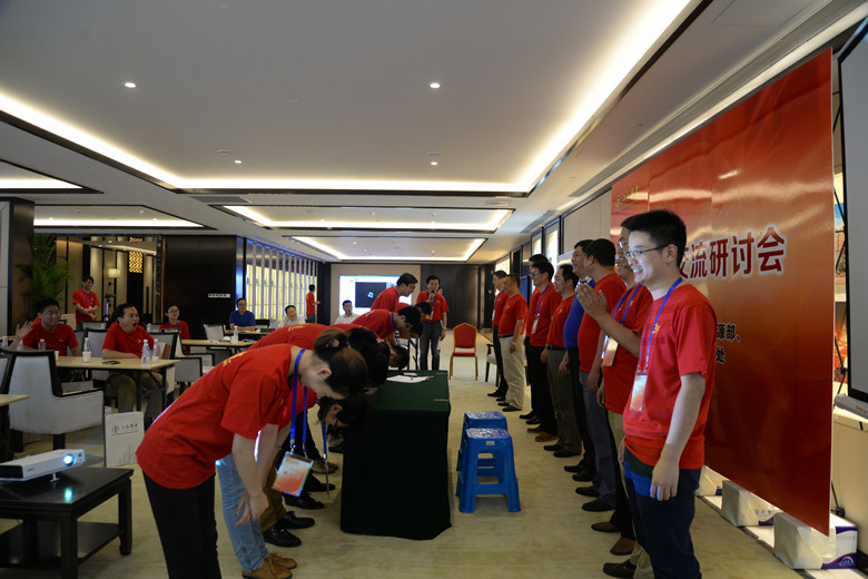 下午,大家還舉行了短暫的拓展活動(dòng),在簡(jiǎn)單的游戲中悟出了深刻的成長(zhǎng)道理。隨后,4個(gè)組各一男一女2名代表和1名部門(mén)負(fù)責(zé)人就如何拓展公司員工成長(zhǎng)的通道和途徑分享了各自的想法和建議。陸董事長(zhǎng)向表現(xiàn)優(yōu)異的員工代表贈(zèng)送了書(shū)籍。12名青年員工代表行正式拜師禮,拜12名老員工為師,師徒共同在青年員工成長(zhǎng)目標(biāo)導(dǎo)航圖上簽字,活動(dòng)在《點(diǎn)一盞心燈給你》的音樂(lè)聲中圓滿結(jié)束。