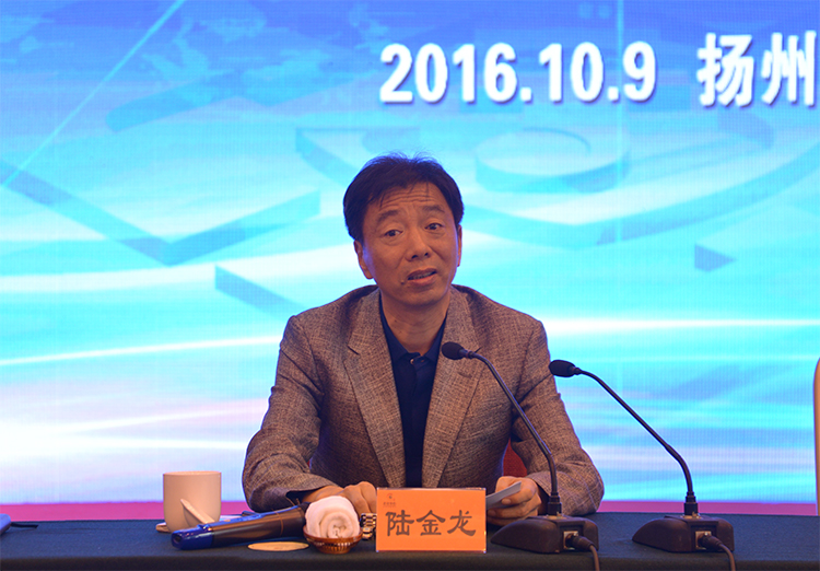 ▲揚(yáng)州生態(tài)科技新城黨工委書(shū)記、華建聯(lián)盟名譽(yù)主席陸金龍講話
