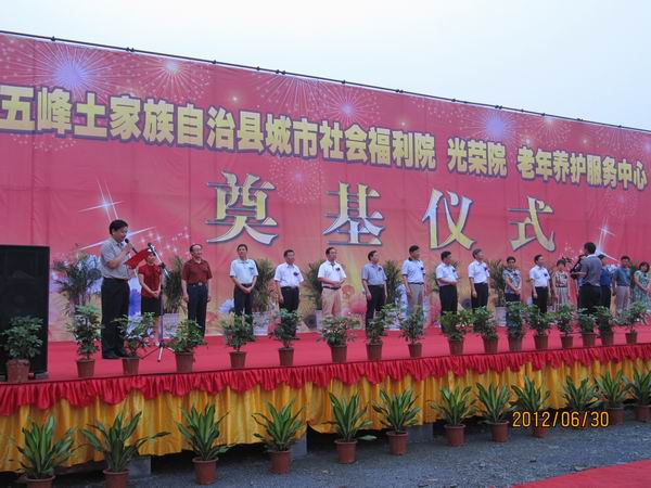 作為五峰新縣城遷建的首個重點項目,“五峰民政園”是一個集城市社會福利院、光榮院、老年養(yǎng)護服務中心、城市流浪人口救助站暨未成年人救助保護中心和兒童福利指導中心等設施于一體的高標準民政服務中心。儀式上,省民政廳副廳長趙顯富在致辭中強調(diào)本項目的重要性,要求各參建單位精心組織,科學施工,加快進度,保質(zhì)保量完成任務;要按照“全國一流、全省領先”的工作要求,搶抓機遇,用足政策,真正把“五峰民政園”建成民心工程、德政工程、精品工程。