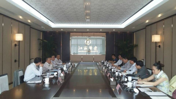 海建集團總裁吳亞春一行赴華建總部考察交流 時間:2015-10-19 4106 10月18日上午,海南省建設(shè)集團有限公司總裁吳亞春一行赴公司總部考察交流,公司常務(wù)副總程杰、海南公司副總高家馴及相關(guān)部門負責(zé)人參加接待交流。交流會上,程總介紹了公司的發(fā)展歷程和基本情況,雙方就蘇瓊兩地建筑施工企業(yè)發(fā)展、用人機制、分配機制和管理理念等方面分享各自的經(jīng)驗與不足,并就尋求深度合作交流了意向,整個交流會氣氛活躍,雙方都感到受益匪淺。
