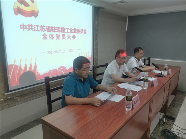 6月16日,江蘇省駐瓊建工企業黨委召開了全體黨員大會,以無記名投票方式,選舉增補2名黨委委員和1名紀委委員,江蘇省駐瓊建工企業黨委書記陸俊主持會議。