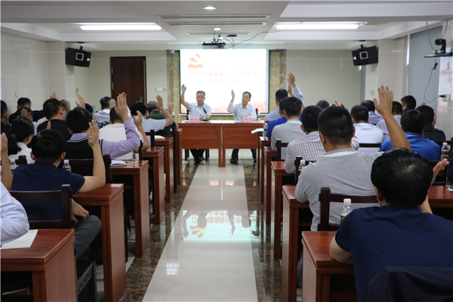 黨員大會上,海南分公司黨總支書記陸俊代表海南分公司黨總支委員會向大會作了題為“圍繞經濟抓黨建、抓好黨建促經濟”的工作報告。報告從牢固樹立政治意識,切實加強黨員學習教育;大力加強組織建設,切實發(fā)揮黨組織戰(zhàn)斗堡壘作用;持續(xù)開展黨風廉政建設,自覺踐行中央八項規(guī)定;深入開展黨群共建活動,凝心聚力促進公司穩(wěn)定發(fā)展四個方面,回顧了自2016年12月8日換屆以來,海南分公司黨總支在江蘇駐瓊建工企業(yè)黨委和公司總部黨委的正確領導下,緊緊圍繞“服務經濟發(fā)展、促進和諧穩(wěn)定”的主線,認真學習貫徹黨的十八大以來黨中央的新思想、新觀點、新部署和習近平總書記系列重要講話精神,以開展“創(chuàng)先爭優(yōu)”、“兩學一做”和“不忘初心,牢記使命”主題教育等活動為載體,不斷加強黨的思想、組織、作風和制度建設,為江蘇華建海南分公司做強做優(yōu)做大,實現公司健康穩(wěn)定發(fā)展提供了堅強的思想、政治和組織保證。