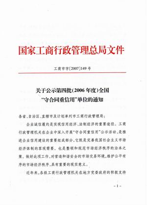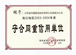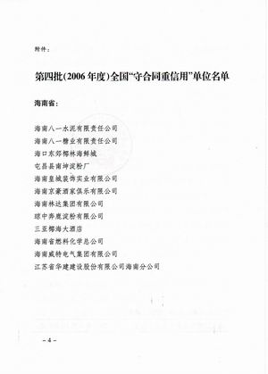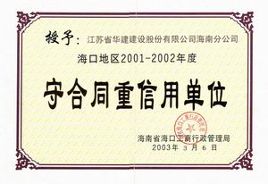 企業誠信榮譽 時間:2019-01-01 8783 2001-2002年度海口市守合同重信用 2003-2004年度海口市守合同重信用 2005-2006年度海口市守合同重信用 2002-2004年度海南省守合同重信用 2006年度全國守合同重信用1 2006年度全國守合同重信用2 2006年度全國守合同重信用3 2006年度全國守合同重信用4 2012年度海南省守合同重信用