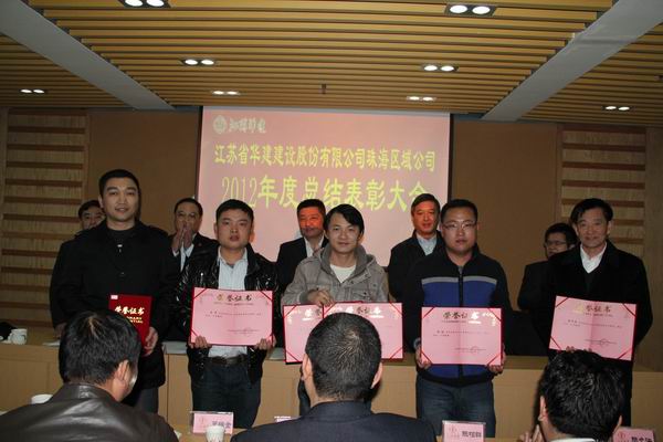2013年1月12日,珠海區(qū)域公司在珠海公司會(huì)議室召開(kāi)了2012年度總結(jié)表彰大會(huì),各工程處主任、直管項(xiàng)目經(jīng)理、先進(jìn)個(gè)人代表、公司機(jī)關(guān)全體人員共66人參加了會(huì)議。會(huì)議由公司副總經(jīng)理盧達(dá)同志主持,江蘇華建副總經(jīng)理、珠海分公司總經(jīng)理繆國(guó)樞同志作了工作報(bào)告??娍偟墓ぷ鲌?bào)告從七個(gè)方面對(duì)珠海區(qū)域公司2012年度的工作做了認(rèn)真的總結(jié),并對(duì)2013年的工作提出了打算。分公司副總經(jīng)理嚴(yán)正濤同志在會(huì)上對(duì)區(qū)域公司2013年生產(chǎn)經(jīng)營(yíng)工作計(jì)劃作了解讀,對(duì)2013年的主要經(jīng)營(yíng)指標(biāo)進(jìn)行了分解,明確了各工程處(直管項(xiàng)目部)的具體指標(biāo)任務(wù)。會(huì)議表彰了徐平等23名先進(jìn)個(gè)人和“陽(yáng)江陽(yáng)光馬德里項(xiàng)目部”等3個(gè)先進(jìn)單位,分公司副總經(jīng)理、總工程師周學(xué)軍同志宣讀了表彰決定。大會(huì)結(jié)束后繆國(guó)樞總經(jīng)理代表區(qū)域公司與2012年下半年新開(kāi)工的5個(gè)項(xiàng)目部簽訂了修改后的內(nèi)部承包協(xié)議書(shū),修改后的內(nèi)部承包協(xié)議加大了創(chuàng)建品牌的獎(jiǎng)勵(lì)力度,激勵(lì)新開(kāi)項(xiàng)目爭(zhēng)創(chuàng)優(yōu)質(zhì)工程,為提升企業(yè)形象,鑄造企業(yè)金字招牌多做貢獻(xiàn)。