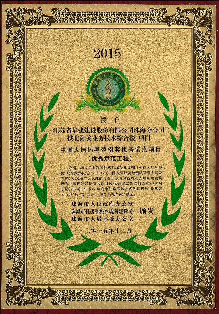 公司榮獲珠海市人居環境建設突出貢獻單位等四項表彰 時間:2015-12-22 4324 近日,珠海公司被珠海市人民政府辦公室、珠海市住房和城鄉規劃建設局和珠海市人居環境辦公室聯合表彰為珠海市人居環境建設突出貢獻單位(優秀建筑施工企業),繆國樞總經理被授予珠海市人居環境建設突出貢獻個人稱號,由我公司承建的拱北海關業務技術綜合樓及南福·錦園項目榮獲中國人居環境范例獎優秀試點項目(優秀示范工程)。