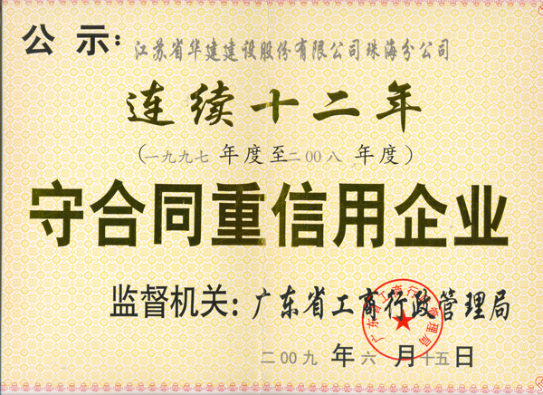 2009廣東省連續(xù)十二年守合同重信用企業(yè)