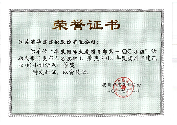 近期,揚州市建筑行業(yè)協(xié)會公布了2018年度揚州市工程建筑業(yè)優(yōu)秀QC小組活動成果評比結(jié)果,公...