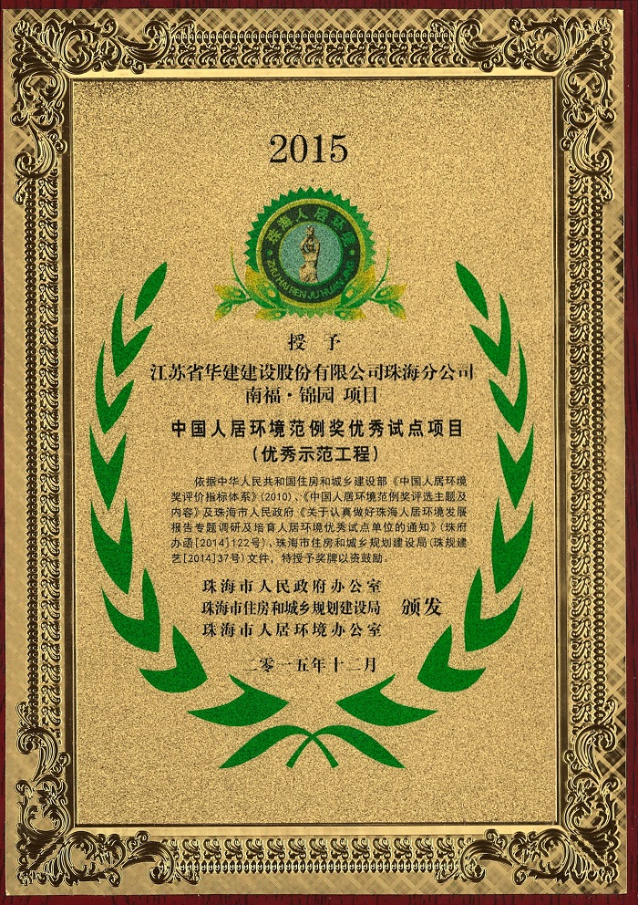 南福錦園榮獲中國人居環(huán)境范例獎(jiǎng)優(yōu)秀試點(diǎn)項(xiàng)目(優(yōu)秀示范工程)
