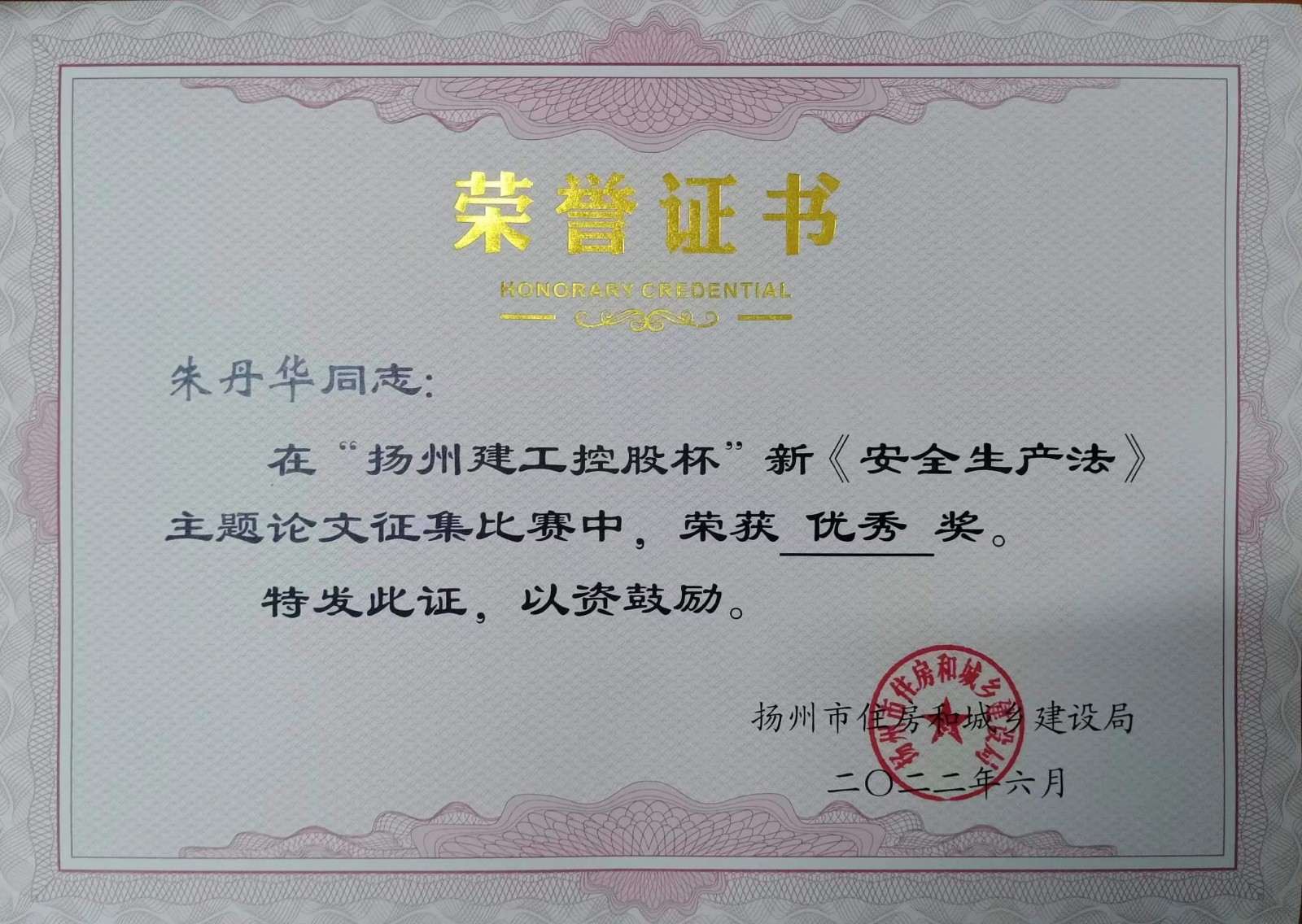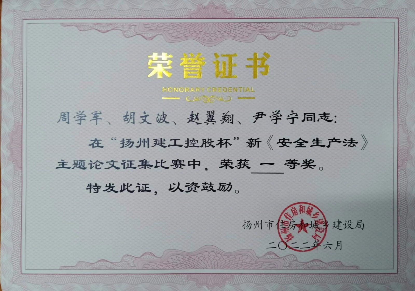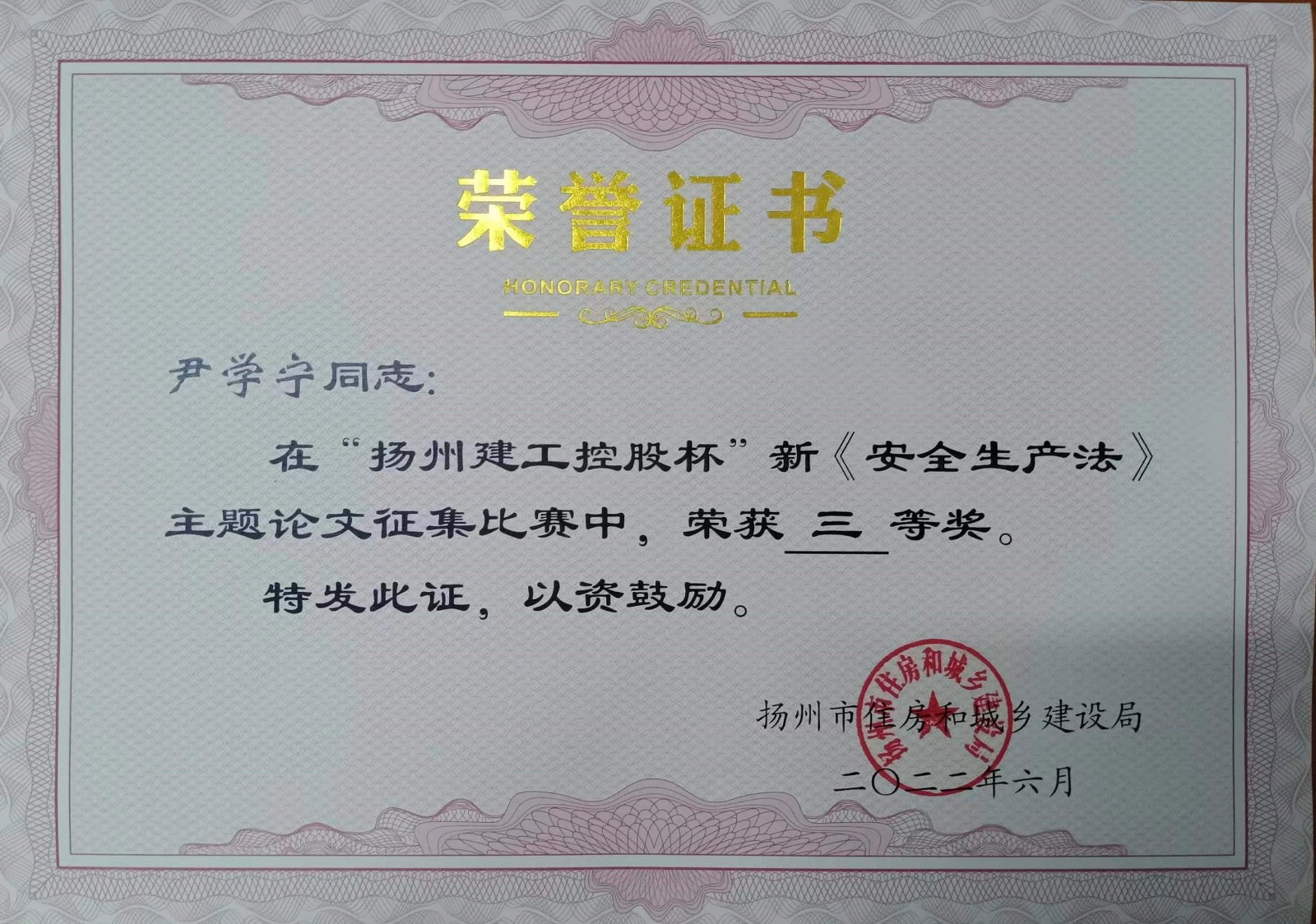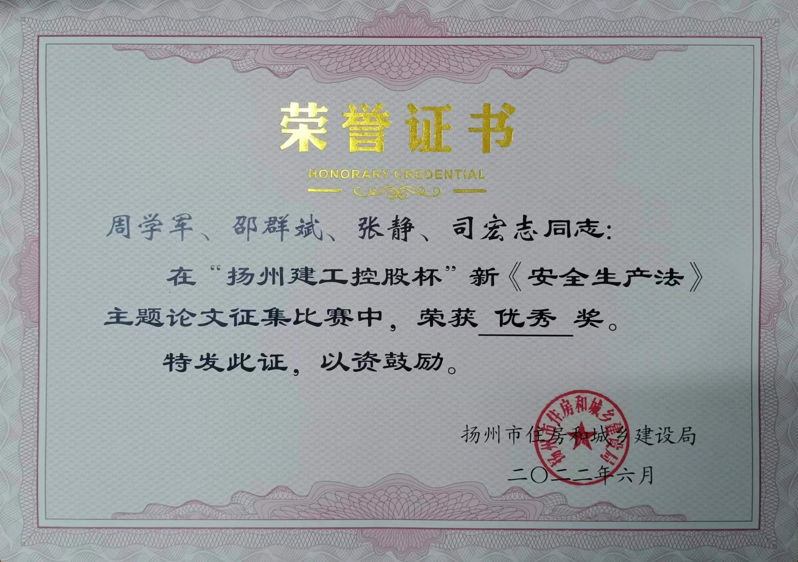 北京分公司4篇論文獲揚州市新《安全生產法》主題論文征文比賽獎項 時間:2022-07-16 3860 近日,從揚州市住房和城鄉建設局傳來喜訊,由北京公司投稿的4篇論文榮獲“揚州建工控股杯”新《安全生產法》主題論文征文比賽獎項,并獲頒證書,其中一等獎一項,三等獎一項,優秀論文獎兩項。
