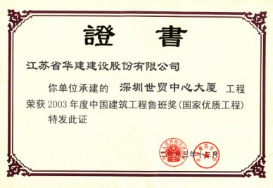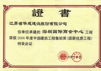 深圳國際商會中心位于深圳市福田中心區(qū)6-3地塊,是深圳市CBD標志性建筑,與會展中心隔街相望,是深圳會展經(jīng)濟圈的地標,也是深圳第一座擁有智能門禁系統(tǒng)、第一座擁有酒店式行車大廳、中心區(qū)第一座擁有商務(wù)直升機停機坪的寫字樓。 本工程是集辦公與商業(yè)為一體的超高層民用建筑,地下3層地上55層,總建筑面積為134081.38平方米,建筑高度216米,結(jié)構(gòu)形式上,主樓為內(nèi)筒外框勁性混凝土結(jié)構(gòu),外墻裝飾主要采用玻璃幕墻,干掛花崗巖和復(fù)合鋁板。本工程于2002年9月3日開工,2004年12月16日竣工。2003年下半年被評為深圳市優(yōu)質(zhì)結(jié)構(gòu)工程,2004年下半年先后通過了深圳市建筑業(yè)新技術(shù)應(yīng)用示范工程驗收和江蘇省第八批新技術(shù)應(yīng)用示范工程驗收,新技術(shù)應(yīng)用“總體上達到國內(nèi)領(lǐng)先水平”。此工程應(yīng)用了建筑業(yè)10項新技術(shù)中的9項,其他新技術(shù)8項,重點創(chuàng)新新技術(shù)2項。在施工過程中,多次受到有關(guān)各方組織的觀摩會、參觀會,2005年獲深圳市優(yōu)質(zhì)工程“金牛獎”、廣東省“金匠獎”、江蘇省“揚子杯”,并榮獲“中國十大金牌寫字樓”榮譽稱號。2006年獲全國建筑最高獎——魯班獎。