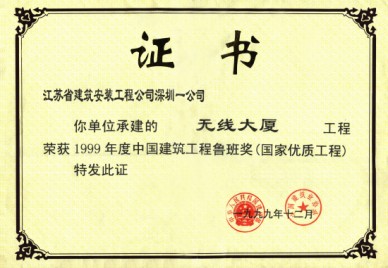 深圳無線大廈 時間:2008-12-29 11574 無線大廈(現名國通大廈)位于福田區新洲,建筑面積73069M2,高度201.5M,地下室2層,地上43層,是一座高智能化的電信寫字樓,結構設計為鋼筋砼框架一筒體結構,8-32層為無粘結預應力樓板砼,工程總造價6億元。工程于1995年6月開工,1997年12月竣工,施工中主要應用了無粘結預應力砼、高強泵送砼、粗直徑鋼筋連接、外墻干掛花崗巖等新技術。榮獲深圳市、廣東省、江蘇省的優質樣板工程,“江蘇省新技術應用示范工程”、江蘇省“揚子杯”獎和99年度國家“魯班獎”。