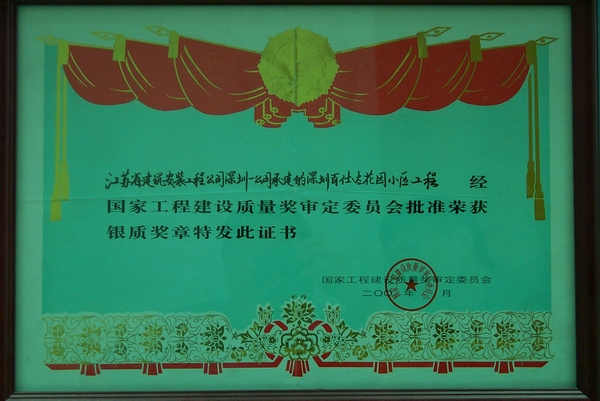 工程位于羅湖區(qū)太寧路,建筑高度15.9米至38.8米,10層/21幢、3層/2幢、5層/1幢,總建筑面積147031平米,1996年1月開工,1998年5月竣工。該工程基礎(chǔ)為樁基,上部為框架及框架剪力墻大板結(jié)構(gòu),隔墻為砼空心砌塊和粘土多孔磚、GRC板,外墻均貼瓷磚、局部噴真石漆及安裝玻璃幕墻,住宅設(shè)計(jì)有單層和復(fù)式層兩種,均設(shè)電梯。工程先后榮獲1998年度江蘇省外施工優(yōu)質(zhì)工程、1999年度江蘇省“揚(yáng)子杯”和1999年度國家優(yōu)質(zhì)工程銀獎。