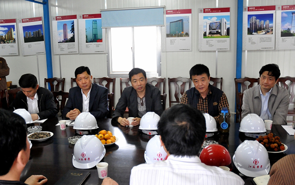 陸金龍董事長一行檢查振興花園安全生產工作 時間:2010-05-07 5712 5月5日,陸金龍董事長一行赴公司在揚首個土建項目振興花園檢查指導安全生產工作。在聽取了項目部相關同志對安全生產情況的具體介紹后,陸總指出,安全生產大于天,各級管理人員要在思想上高度重視,千萬不能有松懈麻痹思想,要對安全工作加大投入,在組織上層層落實,積極開展各類安全培訓教育,切實把安全工作做到位。隨后,陸總一行人到施工現場參觀檢查,對各項工作表示滿意。公司副總經理吳士茂、揚州一分公司李幼杰、王志明等領導陪同參加。