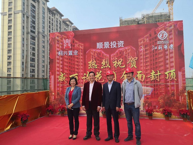 陽江威麗詩花園2期項目全面提前封頂 時間:2019-01-15 2518 2019年1月14日,第一項目部承擔施工任務的陽江威麗詩花園2期項目提前60天實現主體結構全面封頂。珠海利騰集團董事長黃金紅、總經理譚劍云,江蘇華建珠海區域公司總經理呂方達等參加封頂儀式。 威麗詩花園2期8~10棟住宅及地下室、12~15棟住宅及地下室、16棟住宅及地下室(含商業裙樓)、17~18棟住宅及地下室、19棟住宅及地下室(含商業裙樓)土建及水電安裝工程。該工程含商住樓共11棟,其中地下室建筑面積約34378平方米、地上建筑面積約127468平方米,總建筑面積約161847平方米。