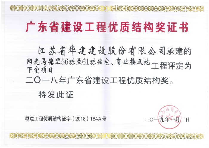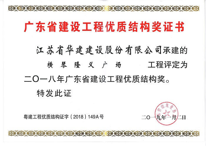 公司3個項目喜獲多項省級表彰 時間:2019-04-10 3498 近日,廣東省建筑業(yè)協(xié)會、廣東省建筑安全協(xié)會分別發(fā)文表彰了一批優(yōu)質(zhì)結(jié)構(gòu)工程、綠色施工示范工程和安全文明工地,公司3個項目榮列榜單。其中,陽光馬德里、橫琴隆義廣場、華策國際大廈均被表彰為二〇一八年廣東省建設工程優(yōu)質(zhì)結(jié)構(gòu)獎,華策國際大廈被授予廣東省建筑業(yè)綠色施工示范工程稱號,橫琴隆義廣場被評為2017年廣東省房屋市政工程安全生產(chǎn)文明施工示范工地。